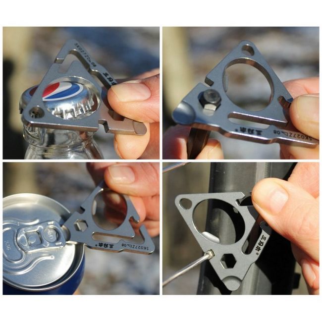 Компоненти: тримач для біти, отвір для згинання дроту, відкривачка для пляшок і бляшанок, ключ для велосипедної спиці 3,5 мм. Розміри: 50 x 50 x 3. Вага: 19,7 г