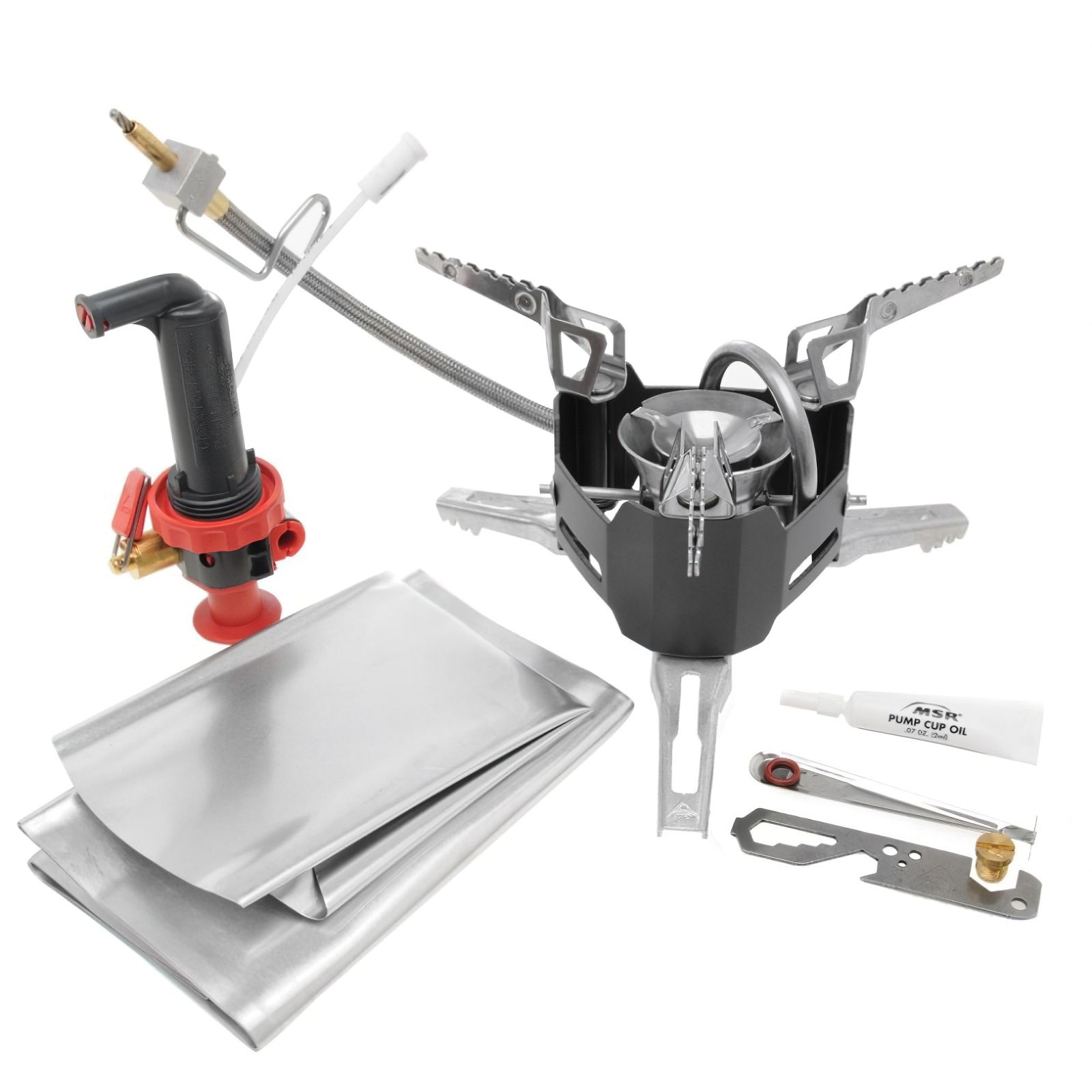 В комплекті: пальник, паливний насос, вітрозахисний екран, відбивач тепла, комплект дрібних деталей, інструкція і пакувальний мішок. (Увага! Паливний балон в комплект не входить!)