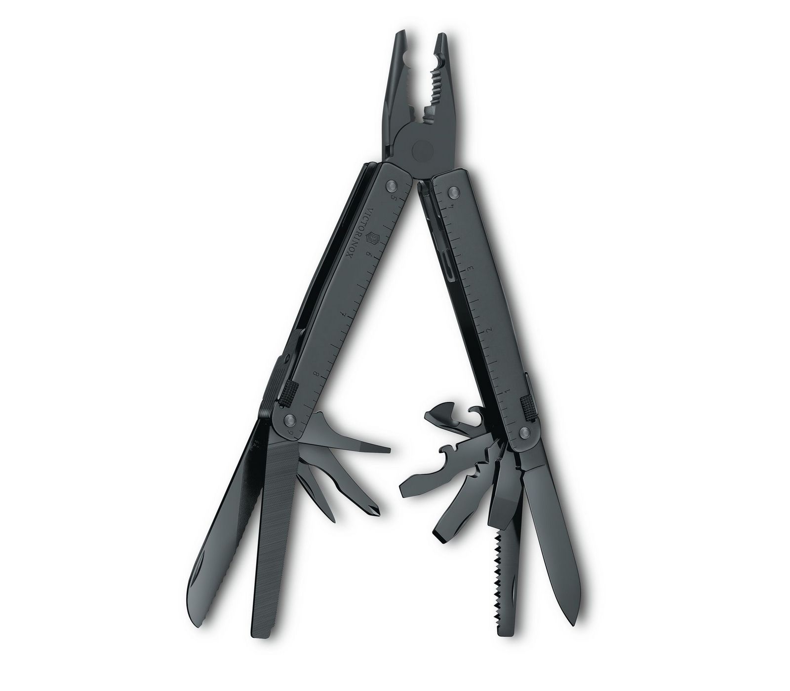 Ще одна відмітна перевага Викторинокс Свисстул – матеріал виготовлення. На відміну від численних аналогів, для виробництва такої моделі була використана спеціальна вороненная сталь, виділяється ефектним, темним відтінком. Сталевий інструмент Викторинокс не боїться корозії, негативного впливу води, а також активних механічних навантажень.