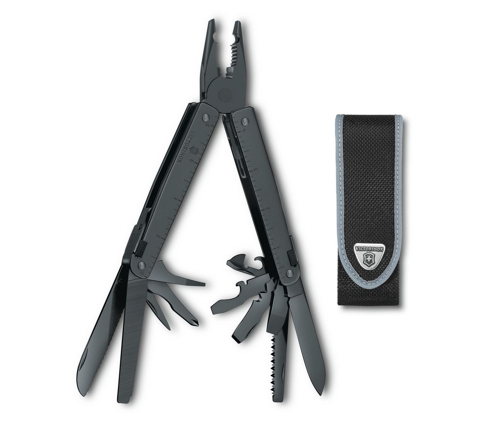 Практичним доповненням цього швейцарського мультитула є чохол з міцного нейлону, який володіє такими корисними властивостями, як стійкість до впливу вологи, розривів, деформації і вигоряння на сонці.