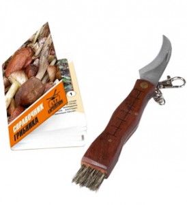 Тонке вигнуте лезо легко зрізає гриби, а за допомогою зубців на зовнішній стороні леза гриби простіше чистити. Зручна дерев'яна рукоятка ножа забезпечена пензликом для очищення грибів від землі, листочків, ялинових голок і моху. Такий ніж може стати не тільки корисним подарунком грибникові, але і талісманом на удачу в полюванні за грибами.