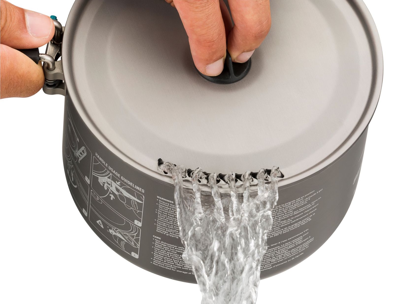 Набір посуду Sea To Summit Alpha™ Pot CookSet 2.1 складається з казанка об'ємом 1,9 літра, 2 мисок Deltalight об'ємом 730 мл і 800 мл і 2 кухлів Deltalite об'ємом по 350 мл кожен. Він ідеально підходить для двох чоловік і являє собою неперевершений легкий кухонний гарнітур для туристів, який допоможе вам приготувати кулінарні шедеври в поході. Виготовлений з твердого анодованого алюмінієвого сплаву казанок Alpha дуже міцний, стійкий до стирання і дуже простий у догляді. Ми впровадили деякі розумні технології, такі як складане руків'я Pivot-Lock™, яке надійно фіксується на місці під час використання і закривається для транспортування, силіконове руків'я LidKeep™, яке утримує кришку збоку від казанка, а не на землі під час готування, і унікальний малюнок сита з прорізами на кришці для стравлювання пару і зливу води. З додаванням елементів полімерного столового посуду DeltaLight™ і можливості їх з'єднання ви будете створювати апетитні страви для гурманів для кожного прийому їжі на свіжому повітрі.