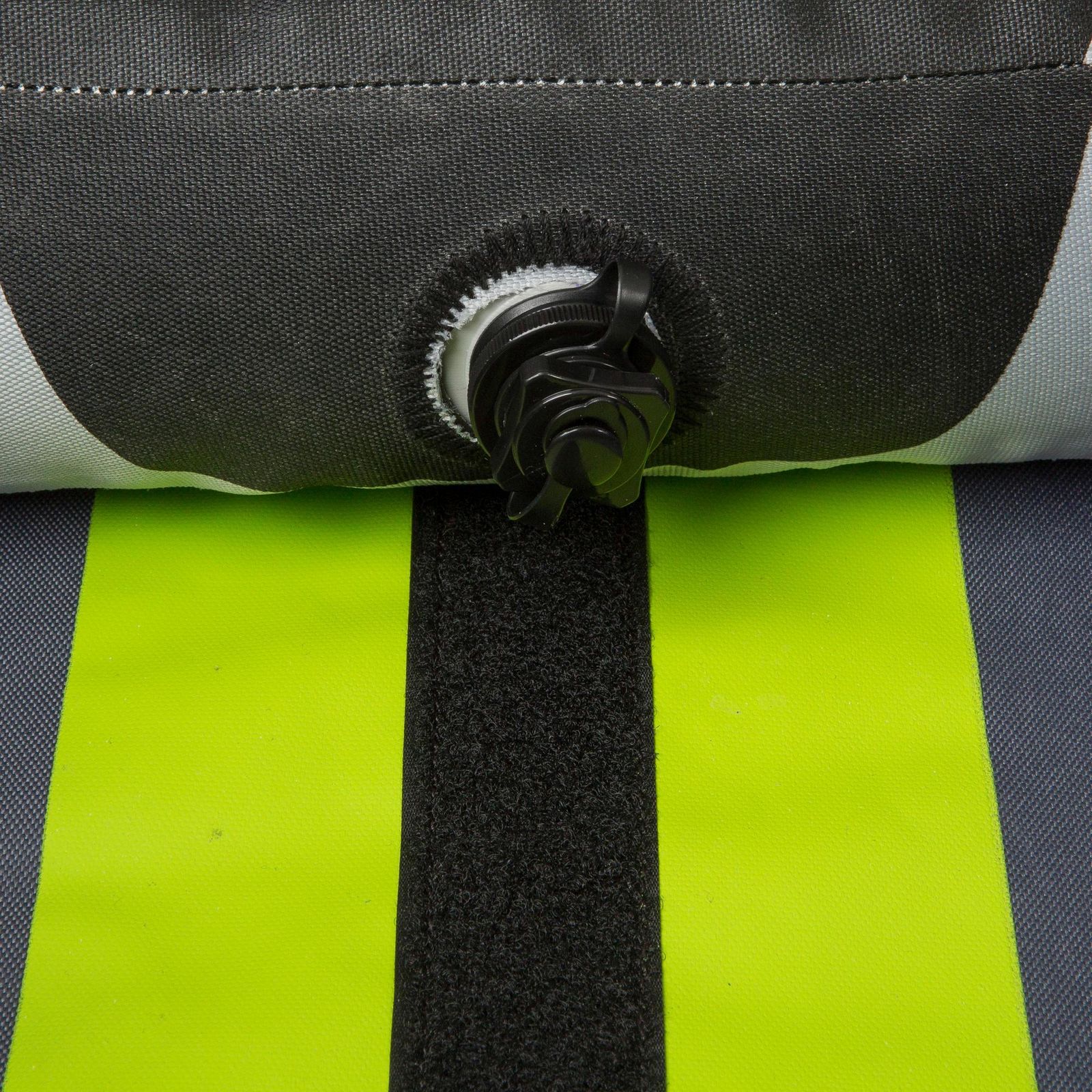 Просушіть і здміть човен, відкривши 3 клапани типу "Boston". Згорнути бокові балони по напрямку до дна. Починати згортати від краю, протилежної клапанів, щоб спустити повітря. Скласти в згорнутому вигляді в основне відділення сумки для транспортування. Закрити блискавку і стягнути сумку компресійними ременями.