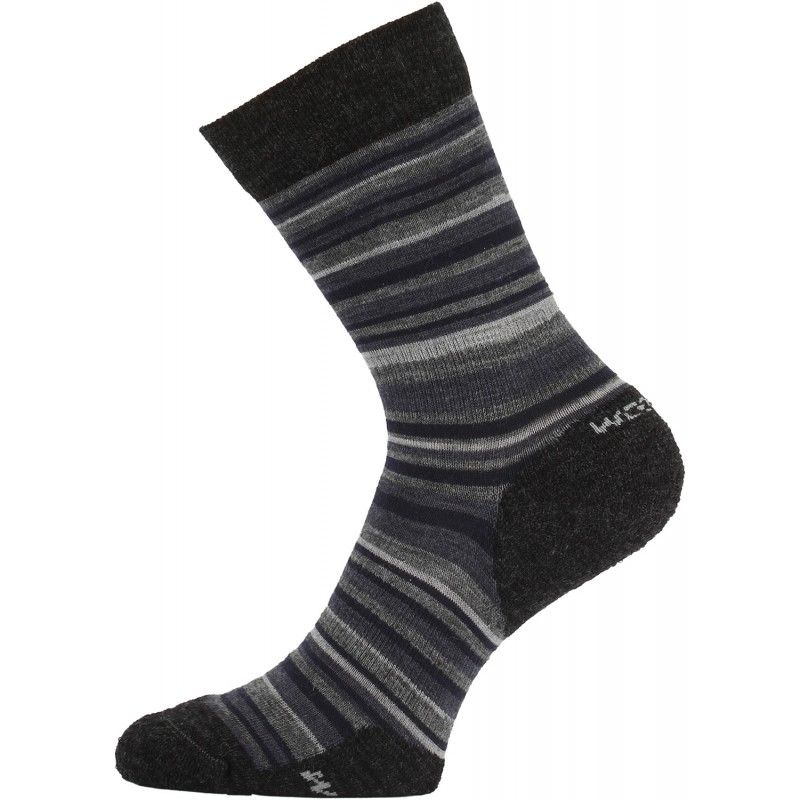 Lasting WPL – це трекінгові термошкарпетки середньої товщини для цілорічного використання, виготовлені одношаровою в'язкою з дизайном у смужку. Виготовлені із суміші вовни Merino та штучних волокон. Вовна Мериносів це унікальний натуральний матеріал, який має відмінні антибактеріальні властивості і нейтралізує неприємні запахи. Шкарпетка та п'ята виконані з гладкого трикотажу, що забезпечує високу механічну міцність. Бандаж навколо щиколотки надійно утримує носок на місці. Шкарпетка оброблена тонкою еластичною трикотажною кромкою з петлею для полегшення натягу шкарпетки, а також еластичною в'язкою на стопі та безшовним миском. Шкарпетки довші за звичайні моделі Lasting, тому їх зручно використовувати з трекінговими черевиками.