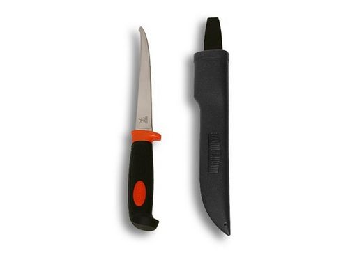 Професіонали і досвідчені любителі оцінять філейний ніж "Експедиція". Гостре і гнучке лезо виготовлене з нержавіючої сталі і спеціально призначене для нарізання рибного і м'ясного філе. Зручна пластикова ручка зробить це заняття легким і безпечним. Насічка не дасть ножу вислизнути в самий відповідальний момент. Пластикові піхви, які кріпляться до поясу або гудзику, зручні для перенесення знаряддя і забезпечують швидкий доступ до нього.