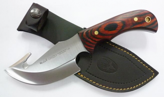 Ніж Muela Grizzly-12R – іспанська мисливський ніж з 440 нержавіючої сталі молибдено-ванидевого сплаву. Ручка зроблена з червоного дерева. Комплектується гарним шкіряним чохлом ручної роботи.