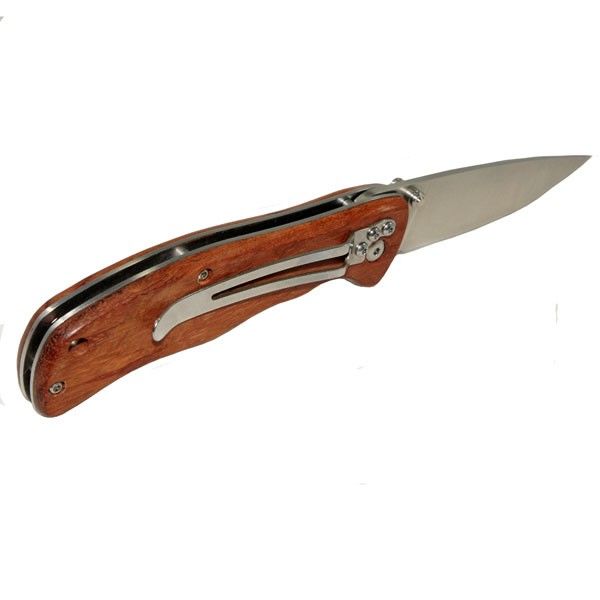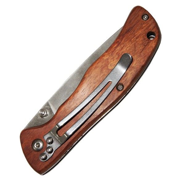 Ніж складаний Enlan Bee L05-01. Відкривається однією рукою з поомщью великого пальця або різким рухом кисті. Система блокровки леза у відкритому положенні. Рукоятка з деревини з кліпсою і отвором для шнурка.
