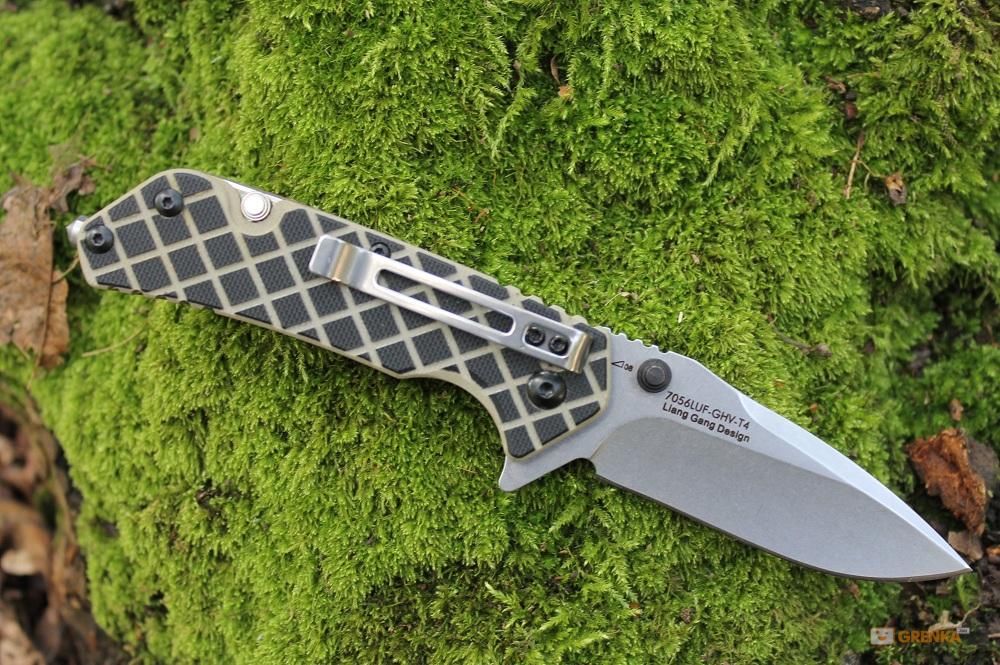 Ніж складний багатофункціональний SanRenMu 7056LUF-GHV-T4. Відкривається однією рукою за допомогою великого пальця або різким рухом кисті. Система блокровки леза у відкритому положенні. Рукоятка з композитного склопластику G10 з набором інструментів: відкривачка для пляшок, консервний ключь, стропоріз і склобій, а також з отвором для шнурка і кліпсою.