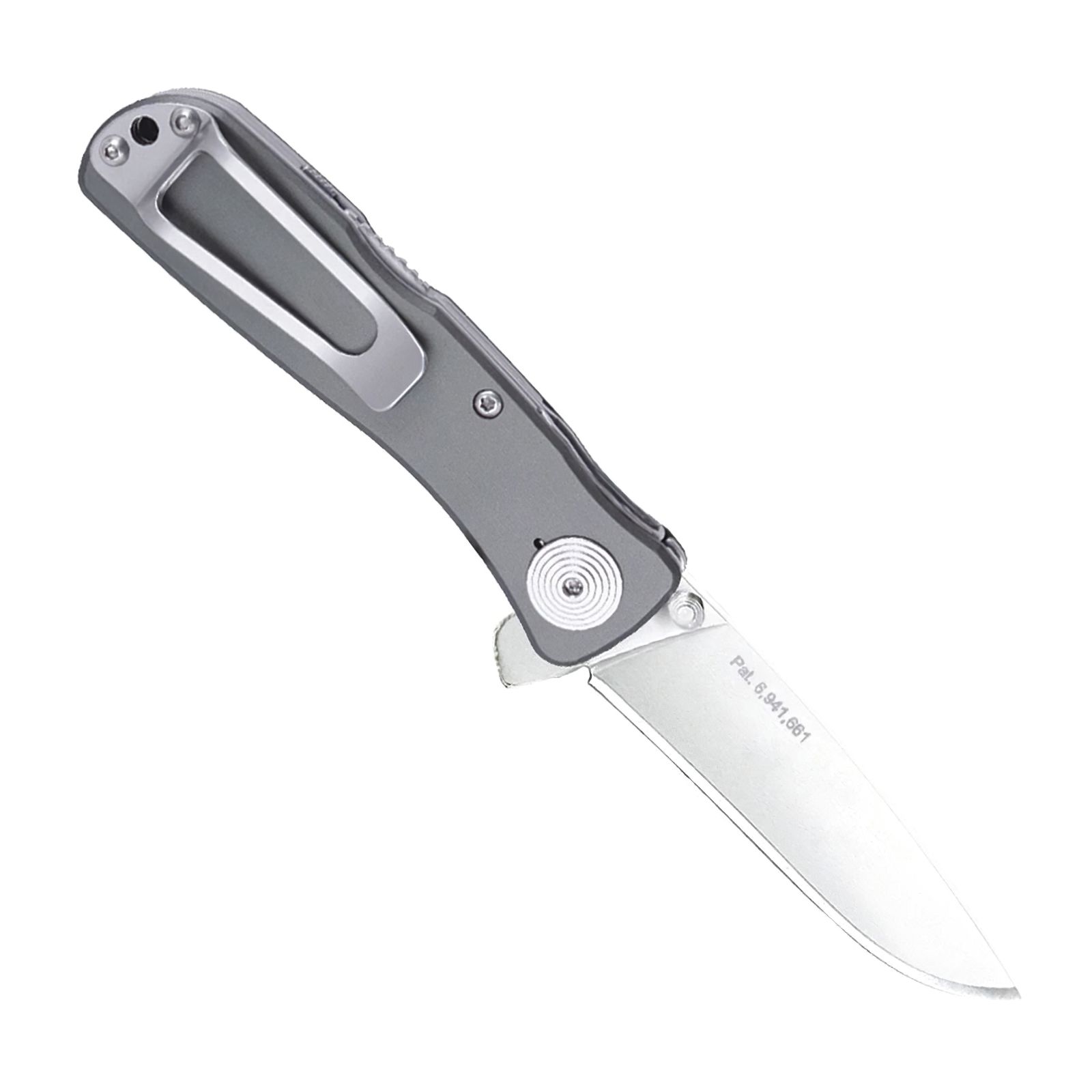 Twitch, оснащений технологією SOG Assisted Technology (S.A.T. ™), дуже швидко відкривається будь-якою рукою за допомогою шпенька і великого пальця або натисканням на спинку рукоятки. Його суцільнометалева конструкція міцна і надійна. Металевий затискач на рукоятці можна використовувати для зберігання грошових купюр, кредитних карток або для закріплення на поясі, кишені штанів. У конструкцію вбудований універсальний запобіжний замок, який допомагає запобігти випадковому відкривання леза при перенесенні або несподіване закривання під час використання ножа.