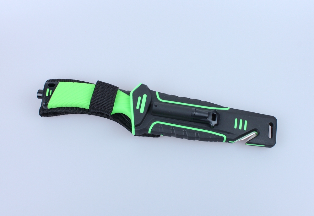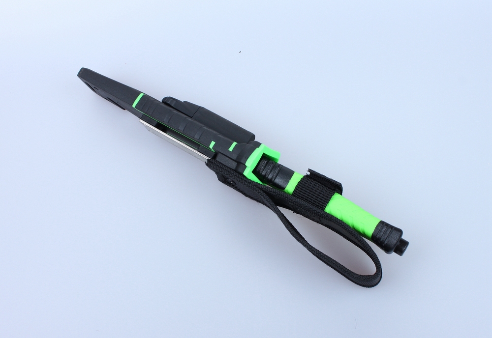 По відношенню до рукоятці лезо жорстко зафіксовано. Сама ж ручка зроблена з термопластику, відомого під назвою ABS. Цей матеріал одночасно легкий і міцний, зручний для використання при різній погоді протягом усього року. Щодо кольори рукоятки для Ganzo G8012, виробники пропонують два варіанти: чорний з оранжевим і зелений з чорним.