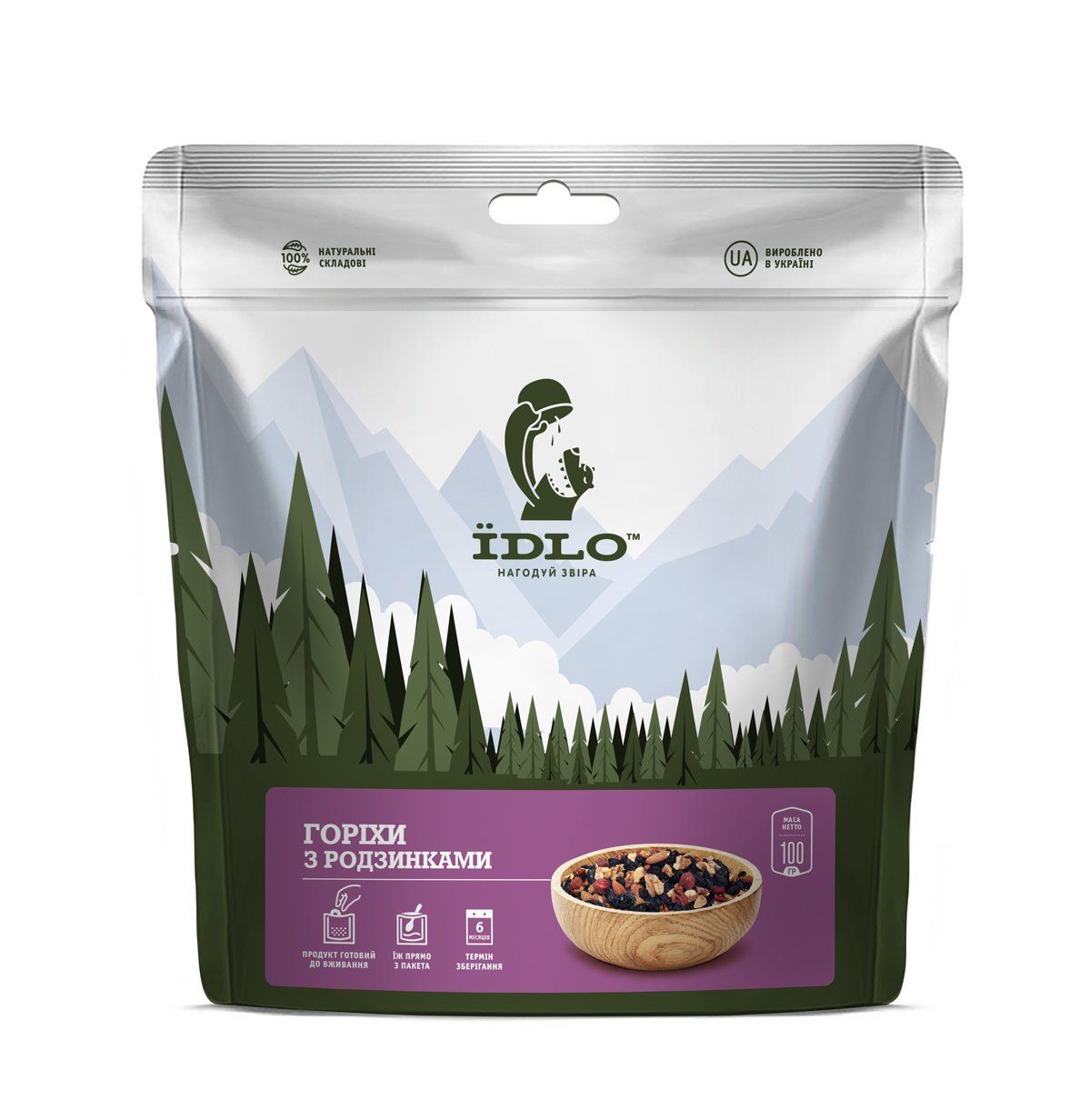 Горіхи з родзинками ЇDLO, коли тобі потрібно якісно і швидко підкріпитися, діставай нашу вибухову білково-вуглеводну суміш! Достатньо лише струснути пакетиком, потягнути за край упаковки - і ти знову робот, машина для подолання перешкод і супер-витривалий солдатів. У набір входять три види горіхів (фундук, мигдаль і волоський), а також смачний чилійський родзинки. Це наше таємна зброя проти втоми: ти ніколи не їв такого соковитого і смачного родзинок, повір! Мабуть на тому боці світу виноград має свої секрети. Є всі відразу не обов'язково - закинув в рот жменю, закрив термоупаковки і йдеш далі, насолоджуючись їжею. Зручно, поживно, корисно і надійно. Тому що у нас все інгредієнти натуральні, а калорії реальні.