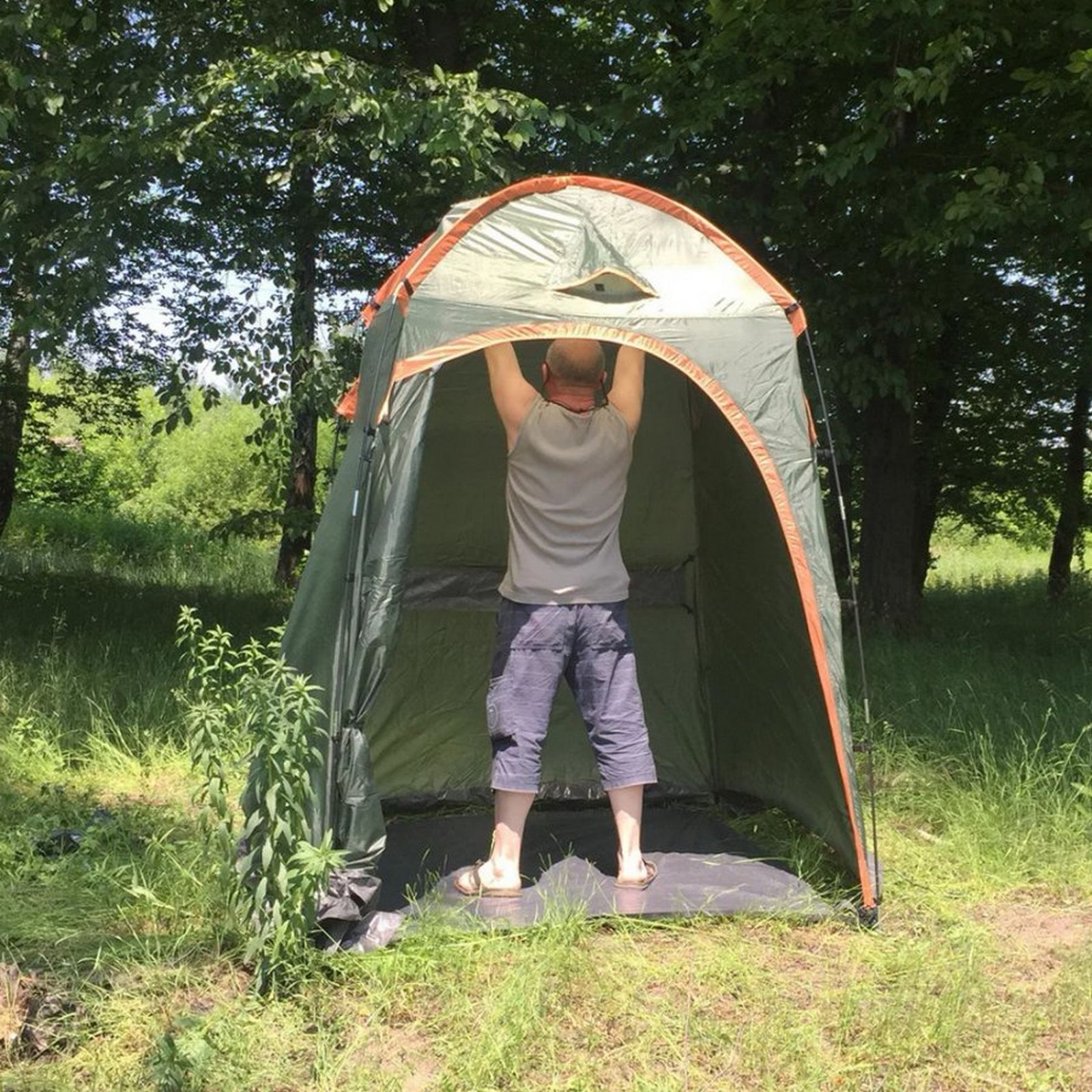Намет, тент Totem Privat з підлогою, що можна зняти для встановлення душу або туалету, може використовуватися під час кемпінгового відпочинку на природі, на дачі та на різних заходах просто неба. Висока стеля та зручна ширина дозволяють комфортно митися, не зачіпаючи головою стелю та ліктями стіни.