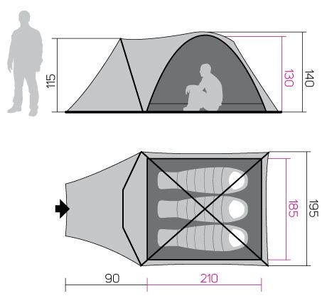Трёхсезонная треххместная намет цієї моделі має наступні функціональними характеристиками: