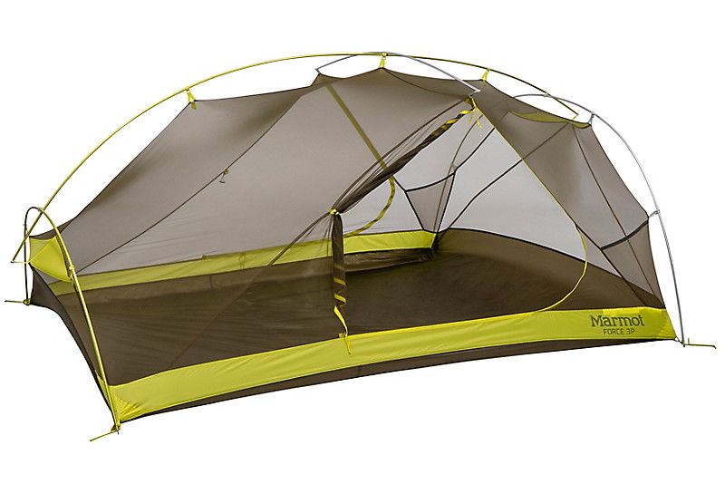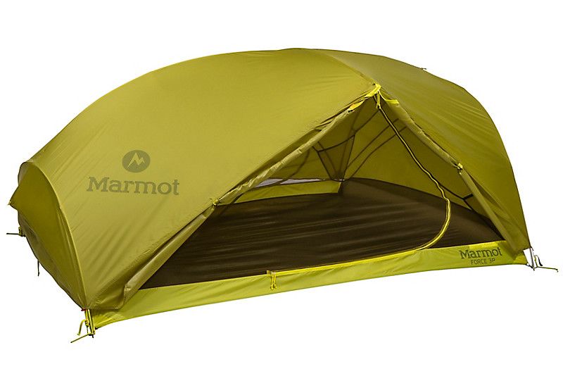 Компактна, дуже легка і міцна тримісний намет Мармот Force 3P, вона ідеально підходить для групових піших туристичних та вело походів. Відмінний баланс ваги до розміру, надійний захист від негоди і комах. Намет має вільно стоїть конструкцію з дюралюмінієвим DAC каркасом з чотирьох дуг з розпірками, два тамбури і два D-образних просторих входу в намет, захищених антимоскітними сітками.
