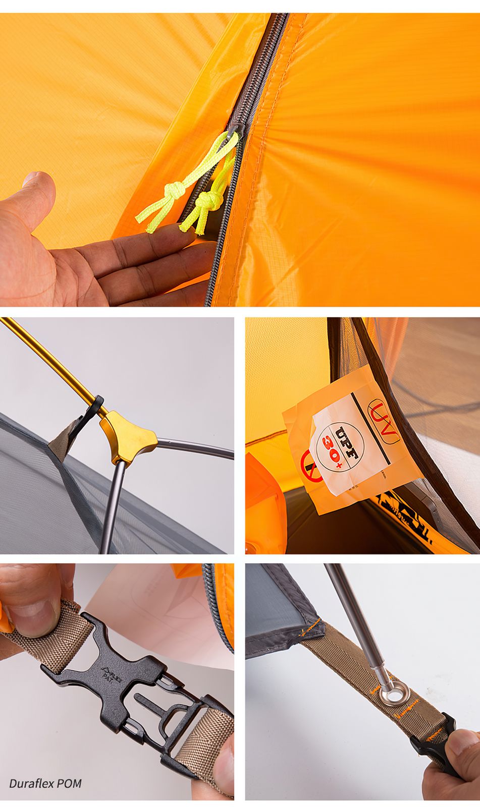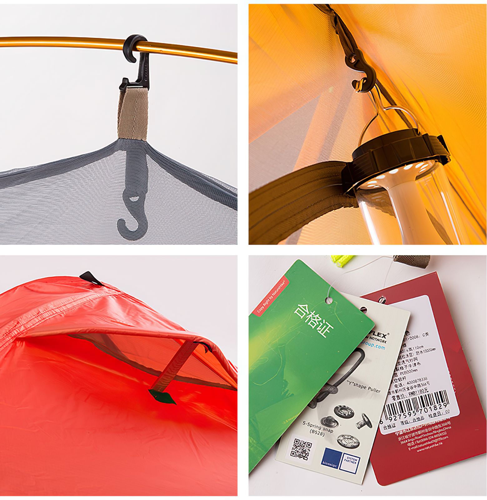 Намет випускається у 2 варіантах тканин: Blue / Red 210T Polyester та Orange / Green / Navy 20D Nylon і відрізняється застосовуваними матеріалами для зовнішнього тенту та внутрішнього намету.