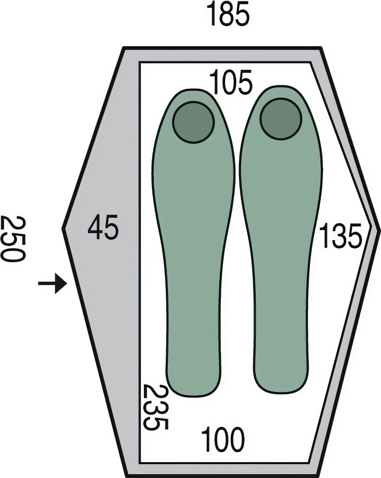 Установка - в основі намету лежить принцип, згідно з яким спочатку встановлюється зовнішній тент в тканинні пази якого вставляється основна дюралюмінієва дуга, далі в області ніг встановлюють дві невеликих стійки до відповідних люверси, які сформують обсяг в нижній частині. Намет не є самонесущей, її потрібно розтягнути і закріпити принаймні мінімальною кількістю кілочків 4 штуками. Після цього зсередини підвішується внутрішній намет. Основною перевагою цієї концепції є те, що внутрішній намет можна відстебнути від тенту, а тент можна встановити окремо, як одношарову намет без статі.