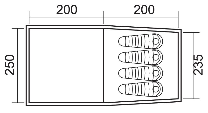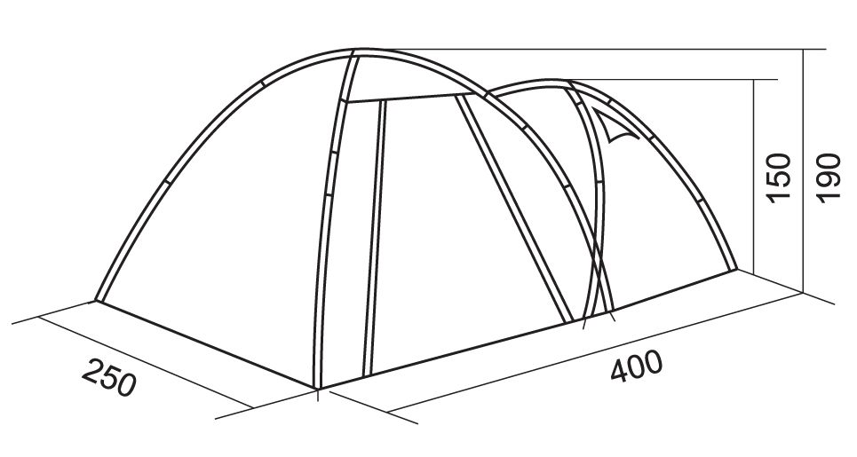 Просторий чотиримісний туристичний намет RedPoint Base 4 FIB з великим полноростным тамбуром висотою 190 см, відчепним підлогою, двома входами в тамбур, один з яких має навіс зі сталевими стійками. Фібергласовий каркас намету з 4 дуг діаметром 11 мм. Житловий відсік має два входи, кожен з яких захищений антимоскітними сітками. Основне призначення намету – кемпінг, базові табори.