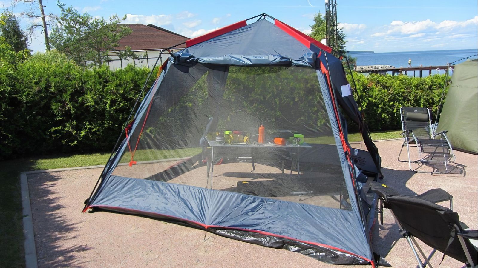 Два гігантських вікна з захистом основною тканиною і антимоскітної сіткою, тканину тенту на липучках, дозволяє себе повністю відчепити і закрепть зверху, антімоскіткі не знімається