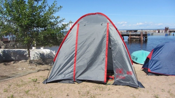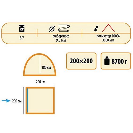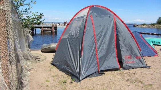 Кемпінговий намет-намет Tramp SOL Fisher, висотою до 1,80 м з спідницею, фібергласовий каркас з двох дуг, один великий житловий відсік, один вхід, всі шви намету проклеєні для максимальної водостійкості, два великих вентиляційних вікна.