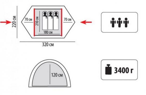Додаткова консольна дуга збільшує внутрішній об'єм намету, вітростійкість і розміри тамбурів