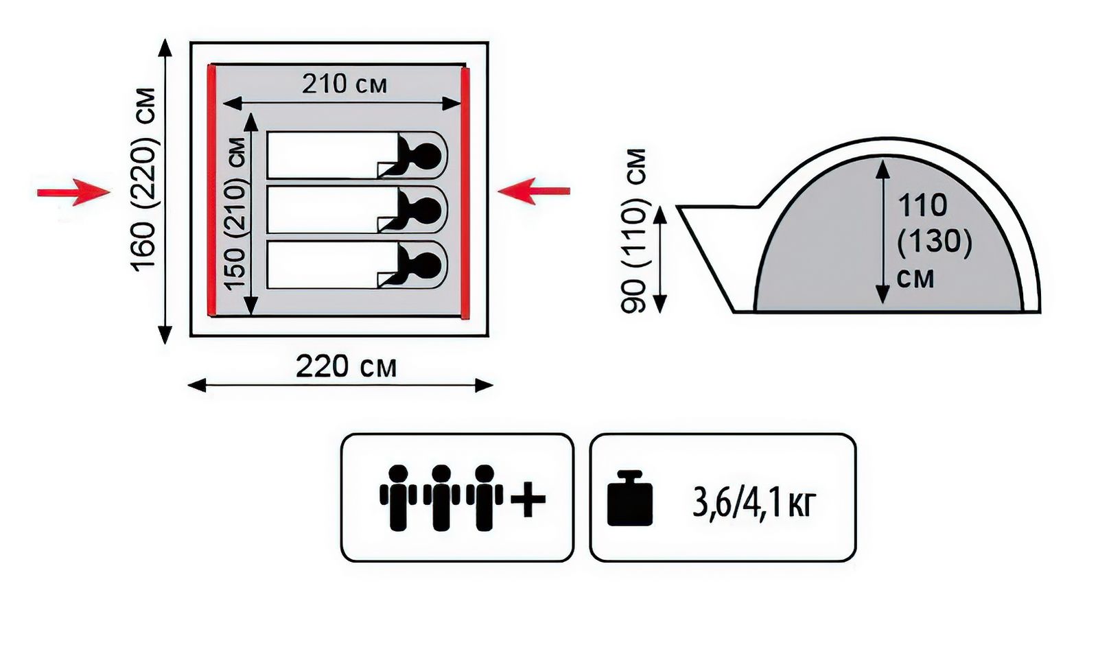 - Двошарова конструкція з початковою установкою внутрішнього намету