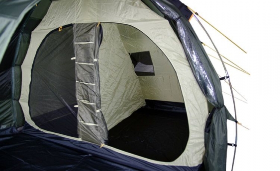 Висококласний сімейний п'ятимісний намет Тера Інкогніта Bungala 5 для тривалого відпочинку, трьохсезонного призначення. Надзвичайно просторий тамбур ідеально підходить для розміщення багажу чи організації кемпінгової кухні. Додатковою перевагою цієї намети служить можливість входу в тамбур з двох сторін, вікно з антимоскітною сіткою і ефективна вентиляція.