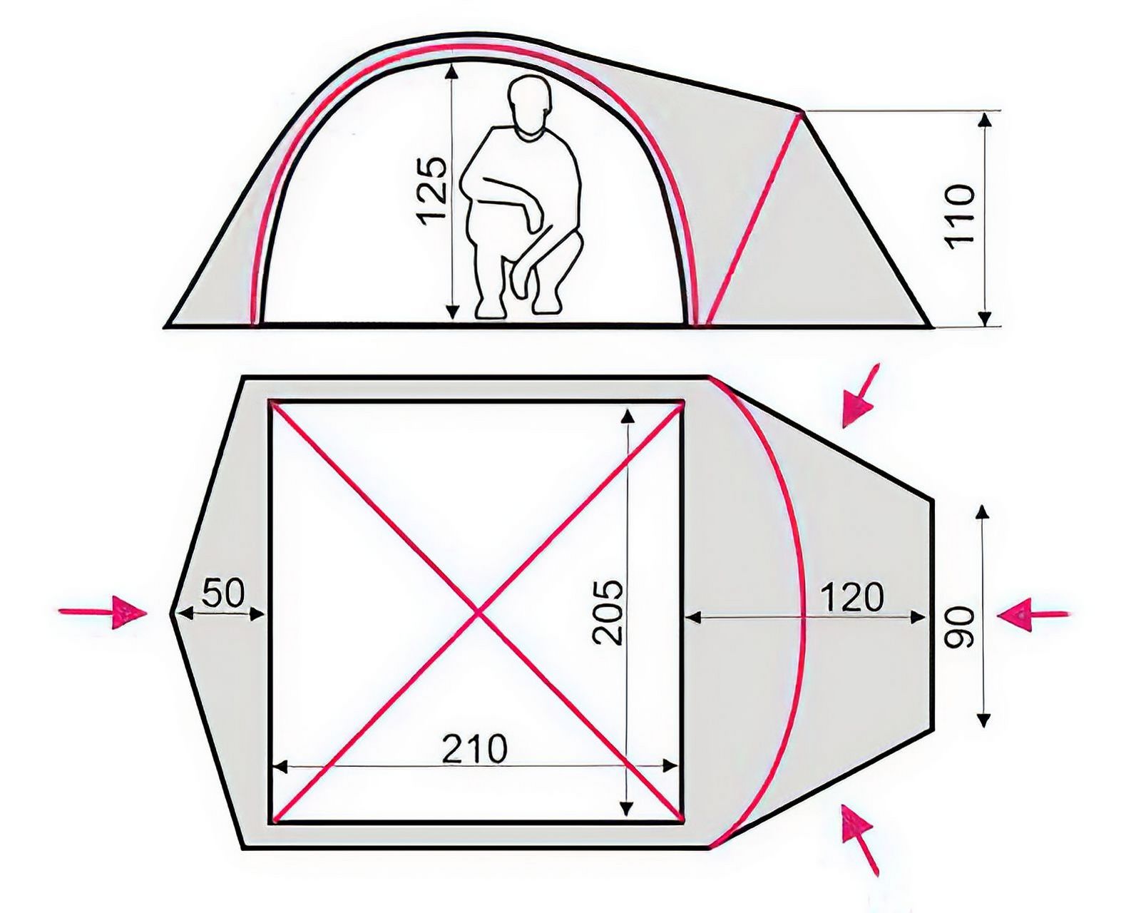 Такий результат досягнуто завдяки вмілому поєднанню матеріалів і конструкції. Зовнішній тент виконаний з поліестерового матеріалу щільністю плетіння в 185T зі спеціальною водонепроникною пропиткою і додатковими нитками посилення ріп-стоп. Це тип армованої тканини, головною характеристикою якої є відсутність: