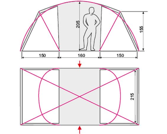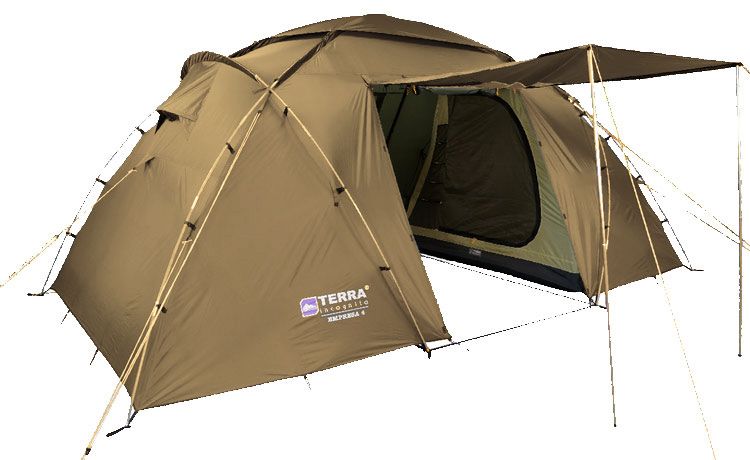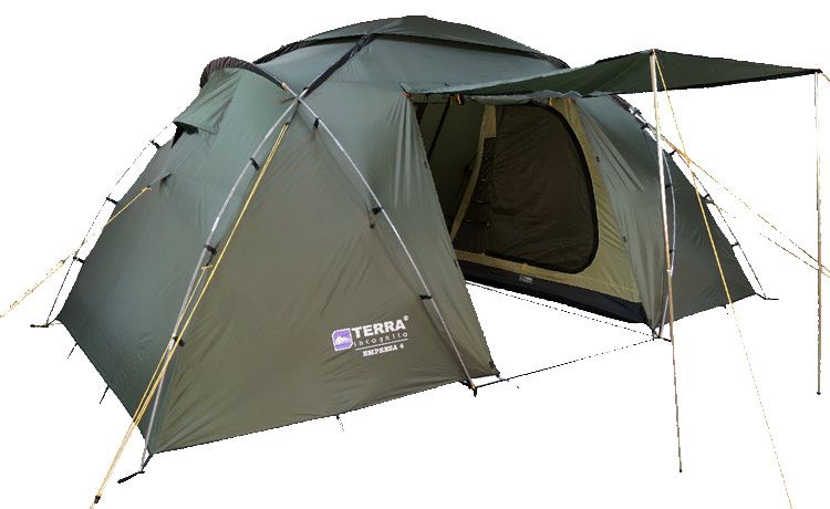 Terra Incognita Empressa 4 максимально комфортний кемпінговий намет для сімейного відпочинку. Два роздільних спальних відсіку предаставлены двома окремими внутрішніми наметами з двох сторін тамбура. Тамбур має два входи і в ньому можна вмістити стіл, стільці і кемпінговий кухню. Можливість входу в тамбур з двох сторін і ефективна вентиляція забезпечують необхідний комфорт. Конструкція дозволяє використовувати зовнішній тент без спальних приміщень як їдальню, склад або базову намет. У комплект до намету входять дві сталеві стійки висотою 1,7 м з їх допомогою при необхідності можна зафіксувати горизонтально відкидний вхід в тамбур як додаткове накриття від сонця, негоди.