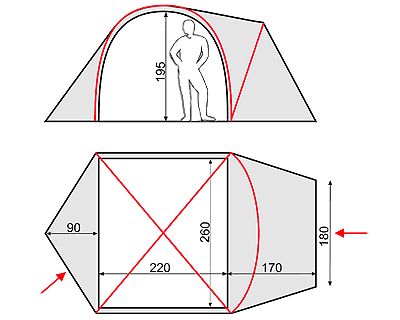 Будовою намет є класичною туристичну півсферу з тамбуром, але в збільшеному кемпінг полноростном виконанні. Конструкція несе Фібергласові каркаса - зовнішня, таким чином спочатку встановлюється зовнішній тент за допомогою двох основних дуг, далі зсередини підвішується внутрішній намет, після установки третьої дуги і натягу розтяжок можна сформувати і сам тамбур. За рахунок зовнішнього каркаса, намет можна використовувати просто як захисний тент і не підвішувати житлової відсік зовсім.
