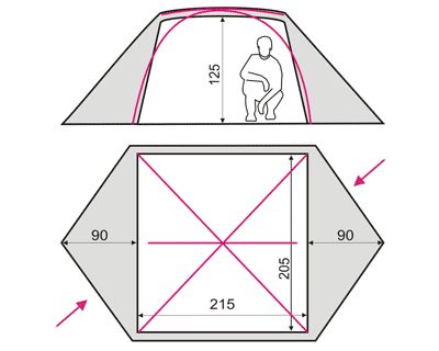 Двошарова туристичний намет забезпечує власникам надійний захист від вітру і вологи, а два входи дозволяють організувати незалежне використання моделі. У тамбурі можуть розташовуватися польова кухня і багаж.