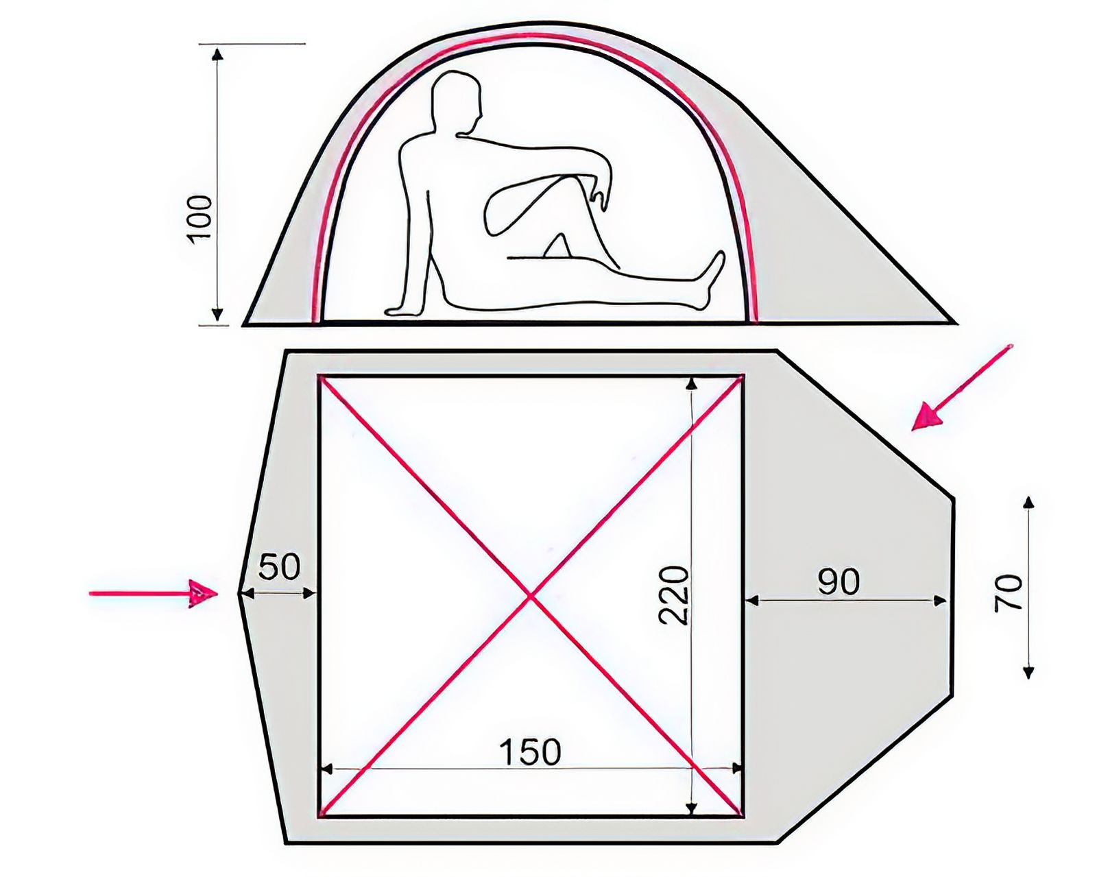 Таке спорядження, незважаючи на невелику вагу, відрізняється великою площею, тому воно складається не тільки з спального приміщення, а й з тамбура, в якому можна вільно розмістити всі похідні речі.