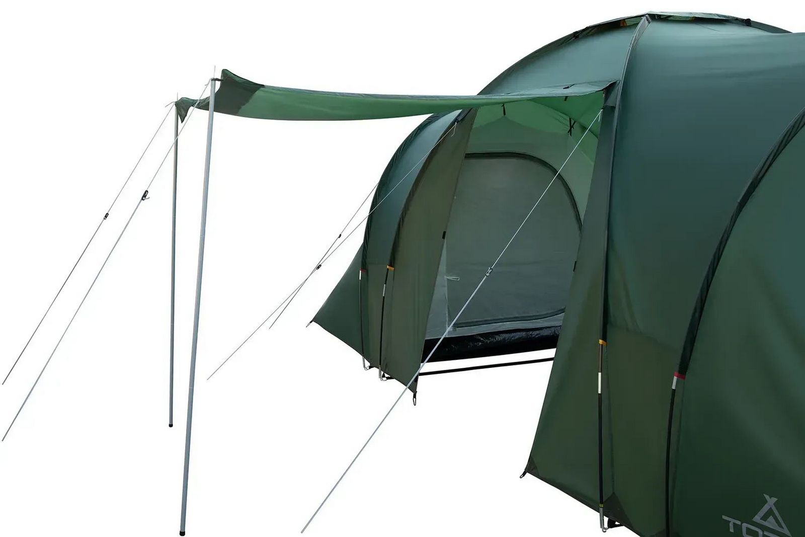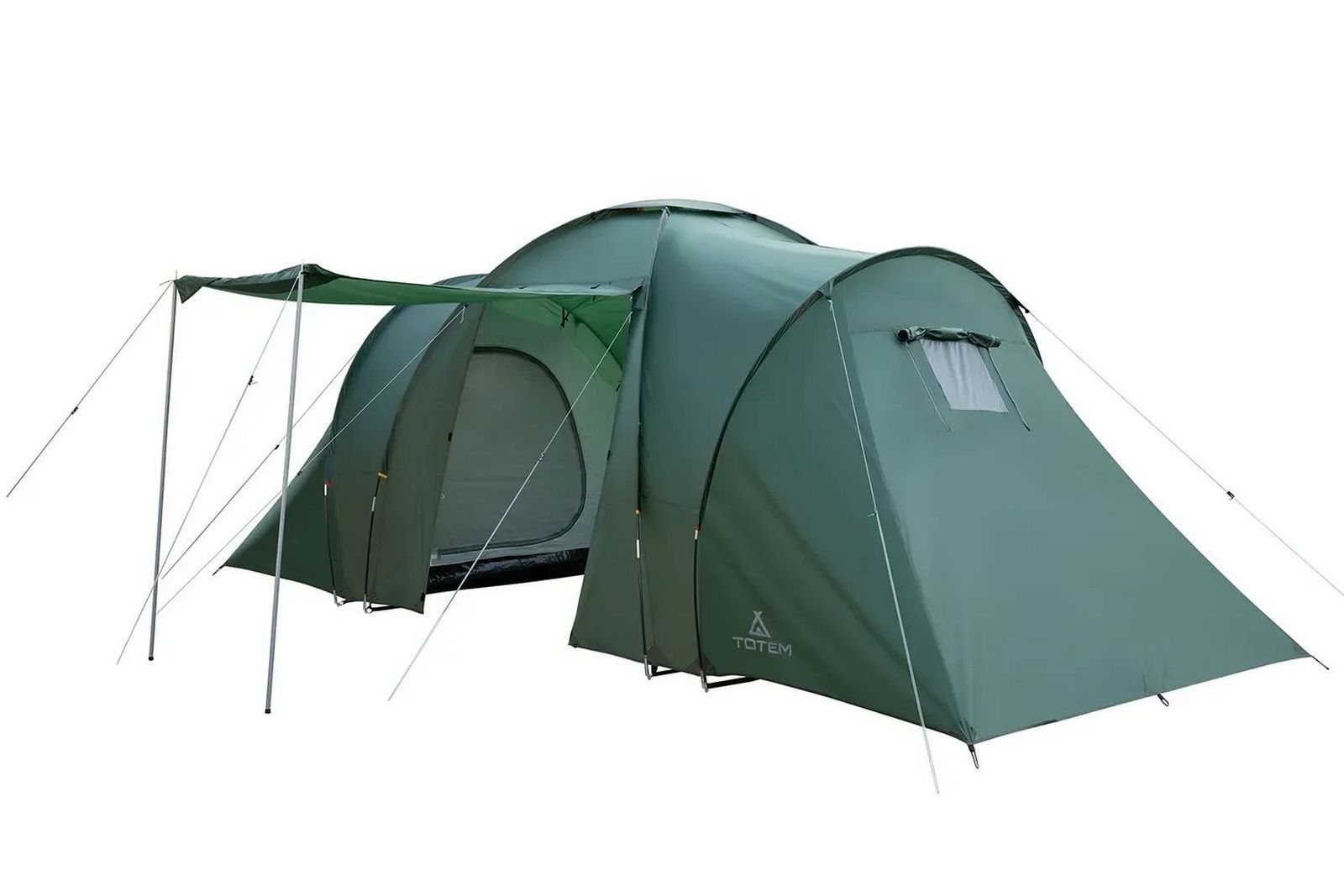 Кемпінговий двошаровий шестимісний туристичний намет Totem Hurone v2 спрощена версія намета Tramp Brest 6. Намет висотою до 2,0 метрів, фібергласових каркас з чотирьох дуг, два житлових відсіка, великий тамбур з двома входами і навіс з двома сталевими стійками, два входи в житлові відсіки захищені антимоскітними сітками, всі шви тенту проклеєні для максимальної водостійкості, два великих вентиляційних вікна. Відмінний намет для сім'ї з дітьми або для компанії з двох пар.