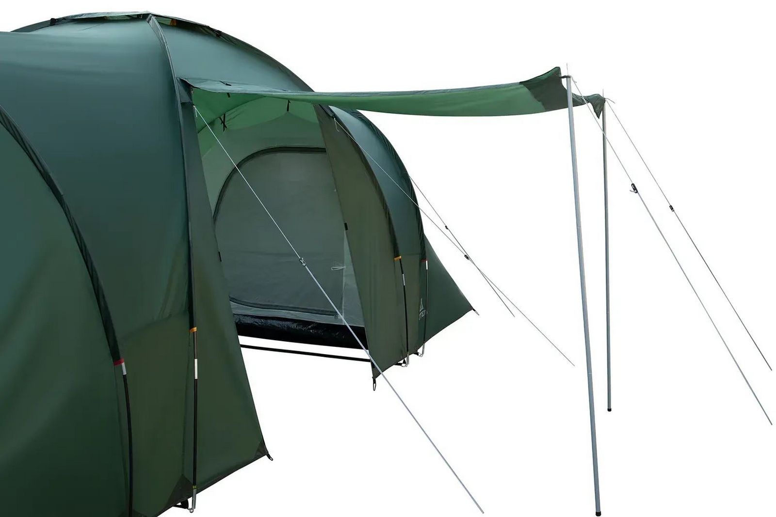 - Двошарова конструкція намета з встановленням дуг каркасу безпосередньо в зовнішній тент, дозволяє використовувати намет як тент без обов'язкової установки житлових кімнат