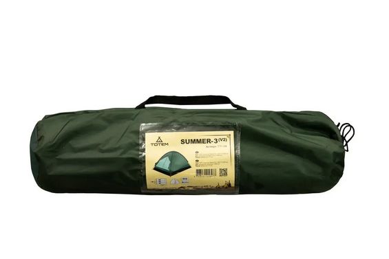 Тримісний одношаровий туристичний намет Totem Summer 3 Plus (v2) з фібергласовим каркасом з трьох дуг, з одним тамбуром і одним входом у житловий відсік, захищений антимоскітною сіткою. Всі тентові шви проклеєні для максимальної водостійкості, а для вентиляції є сітчасті вікна вгорі в куполі намету. Варіант для нетривалих походів вихідного дня та відпочинку на природі.