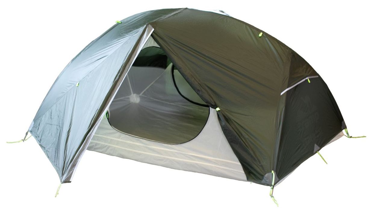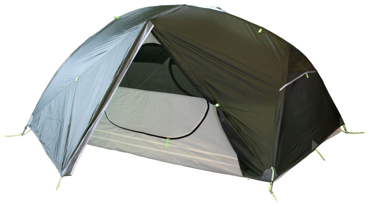 Намет клиноподібної форми з каркасом з двох дуг діаметром 8,5 мм дюралюмінієвого сплаву 7001 з усіканням за висотою і нахилом у бік ніг, що при установці за вітром гарантує відмінну вітрову стійкість, а також звичайно зменшує загальну вагу і розміри в зібраному стані. Подібна конструкція з двох параленьных арок різного розміру, забезпечує можливість зручно не тільки лежати, але і сидіти або напівлежачи читати, готувати їжу, розбирати речі, переодягатися.