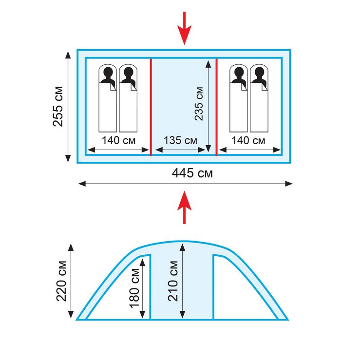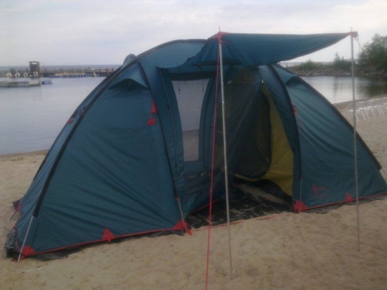 Кемпінговий чотиримісна двошарова туристичний намет Tramp Eagle 4. Полноростная намет висотою 2,10 м з спідницею, дюраполевый каркас з чотирьох дуг і двох стійок, два житлових відсіку, великий тамбур зі з'ємним підлогою з армованого поліетилену і навісом зі стійками, два входи захищених антимоскітними сітками, всі шви намету проклеєні для максимальної водостійкості, два великих вентиляційних вікна.
