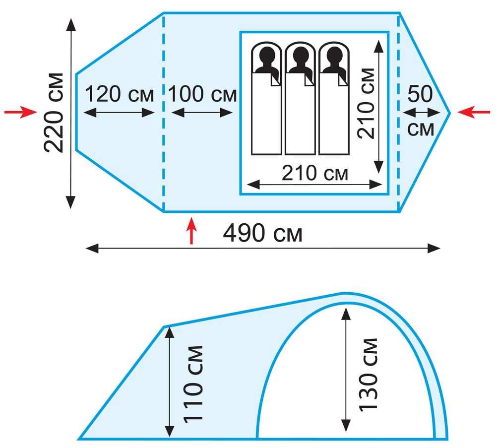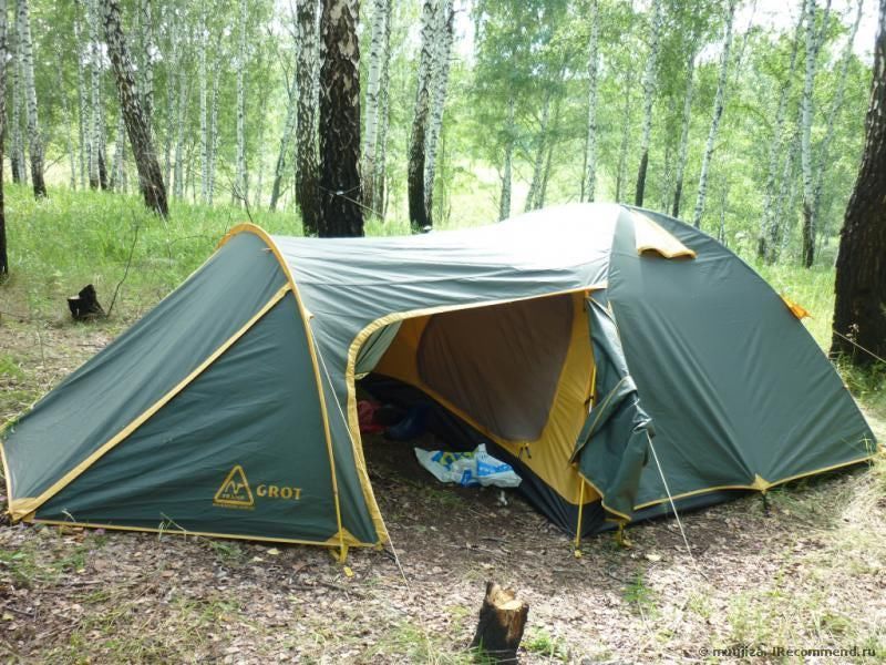 Тримісний намет Tramp Grot 3 – простора і якісна. У ній передбачено достатньо місця для рюкзаків, запас для дрібних речей у спальному відділенні, а також зручні замки і москітна сітка на вході. Міцний каркас витримує пориви вітру під час грози, а зовнішній тент не пропускає воду всередину. Внутрішній намет оснащена двома виходами, підлога виготовлена з досить цупкого матеріалу, який не проколюється жорсткої сухою травою. На тенті 3 виходу з різних сторін і 2 невеликих віконця з сітками. Кріплення розроблені за сучасними стандартами: намет може з легкістю поставити один чоловік, не витрачаючи на це багато часу.