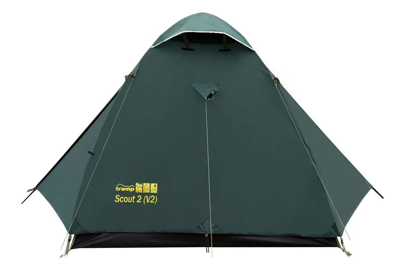 Намет Tramp Scout 2 - двомісна, але за відгуками клієнтів в ній відмінно можна переночувати і трьом. Вона легка (вага 3.1 кг), компактна, купольної форми, тому встановити її без проблем може навіть одна людина. Намет є двошаровою: