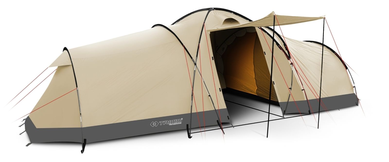 Намет для 8-10 чоловік. Зручна сімейна намет для кемпінгу або база для занять спортом. Просторий тамбур можна використовувати як приміщення для застілля, приготування їжі або в якості запасного спального місця.