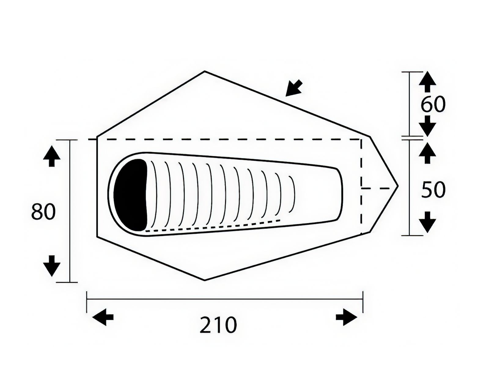 Ультралегкий намет - знахідка для легкоходов. Одномісний намет з невеликим тамбуром. Має протимоскітну сітку. Встановлюється на трекінгових палицю і одну маленьку дугу. Підійде для легких походів в гори, велоподорожей або в якості аварійної намети на випадок, якщо почалася злива в одноденному поході. А також таку легку і компактну палатку можна брати в тривалі подорожі, як запасний варіант, коли більшість ночей плануєте спати в хостелах.