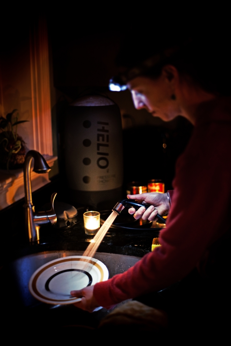 Найбільш зручний похідний туристичний душ у світі, відзначений нагородами National Geographic і men's Journal. На відміну від звичайних гравітаційних переносних душів, які підвішуються над головою і дають тонку цівку води, американський NEMO Helio стійко стоїть на землі. Helio забезпечує потужний потік води, який дозволить з комфортом скупатися, помити посуд, спорядження, собаку або полити рослини.