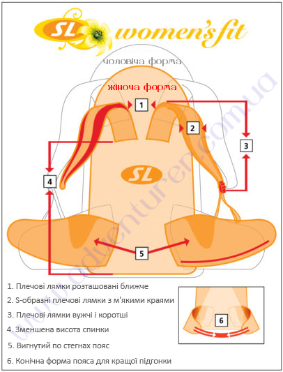 - Лямки анатомічної форми обшиті сітчастим матеріалом 3D AirMesh і регулюються по довжині