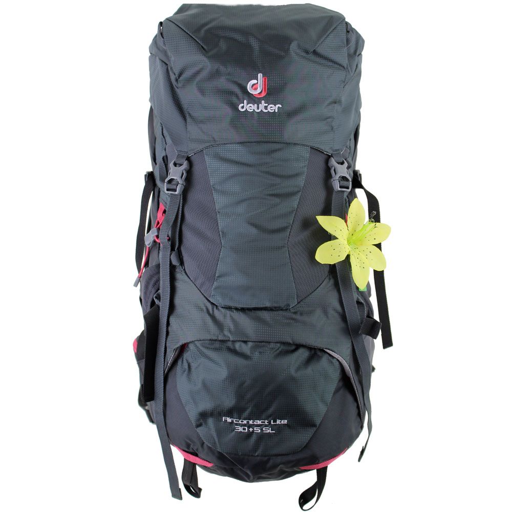 Легкий туристичний рюкзак Deuter Aircontact Lite 30+5 SL сумарним об'ємом 35 літрів, нова модель, яка з 2018 року прийшла на зміну попередньому варіанту ACT Lite полегшеного варіанта похідного рюкзака Aircontact. Оновлений стильний мінімалістичний та ретельно продуманий дизайн, який відрізняється чудовим поєднанням ваги, комфорту та вентиляції. Інноваційна конструкція спинки Aircontact Lite забезпечує ефективне відведення вологого повітря, гарантуючи вам комфорт при сходженнях та класичних походах пересіченою місцевістю.