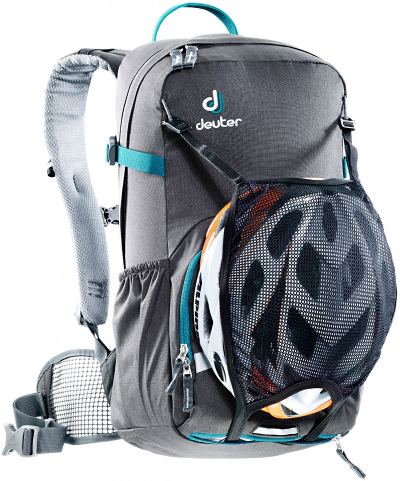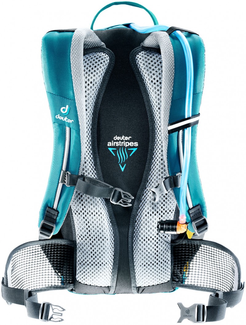 - прекрасна вентиляція, щільне прилягання до спини і безпека велосипедиста забезпечується завдяки системі Deuter Airstripes. Рюкзак сидить на спині як влите і не бовтається. Вузька зона контакту між вентильованими подушками і спиною створює ефект труби між ними, що створює умови для вільної циркуляції повітря практично на 80% площі спини їздця.