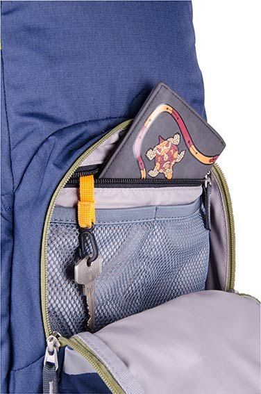 - фронтальна кишеня на блискавці з органайзером і карабіном для ключів і відділеннями для мобільного телефону, гаманця, інструментів і т. д.