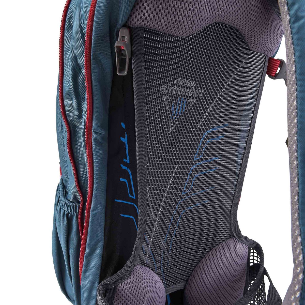 - спинка Aircomfort Flexlite System максимальна вентиляція, свобода пересування і мала вага - унікальне поєднання, завдяки високій еластичності конструкції рами, виготовленої з пружною, перевіреною на розрив пружинної сталі. Вона гнучко слід за будь-якими вашими рухами. Круглий профіль рами жорстко тримає задню сітку в натягнутому стані, це створює достатню вентильований простір між рюкзаком і спиною для відводу вологого повітря. Людина пітніє на 25% менше, завдяки запатентованій Deuter 3-сторонньої вентиляції.