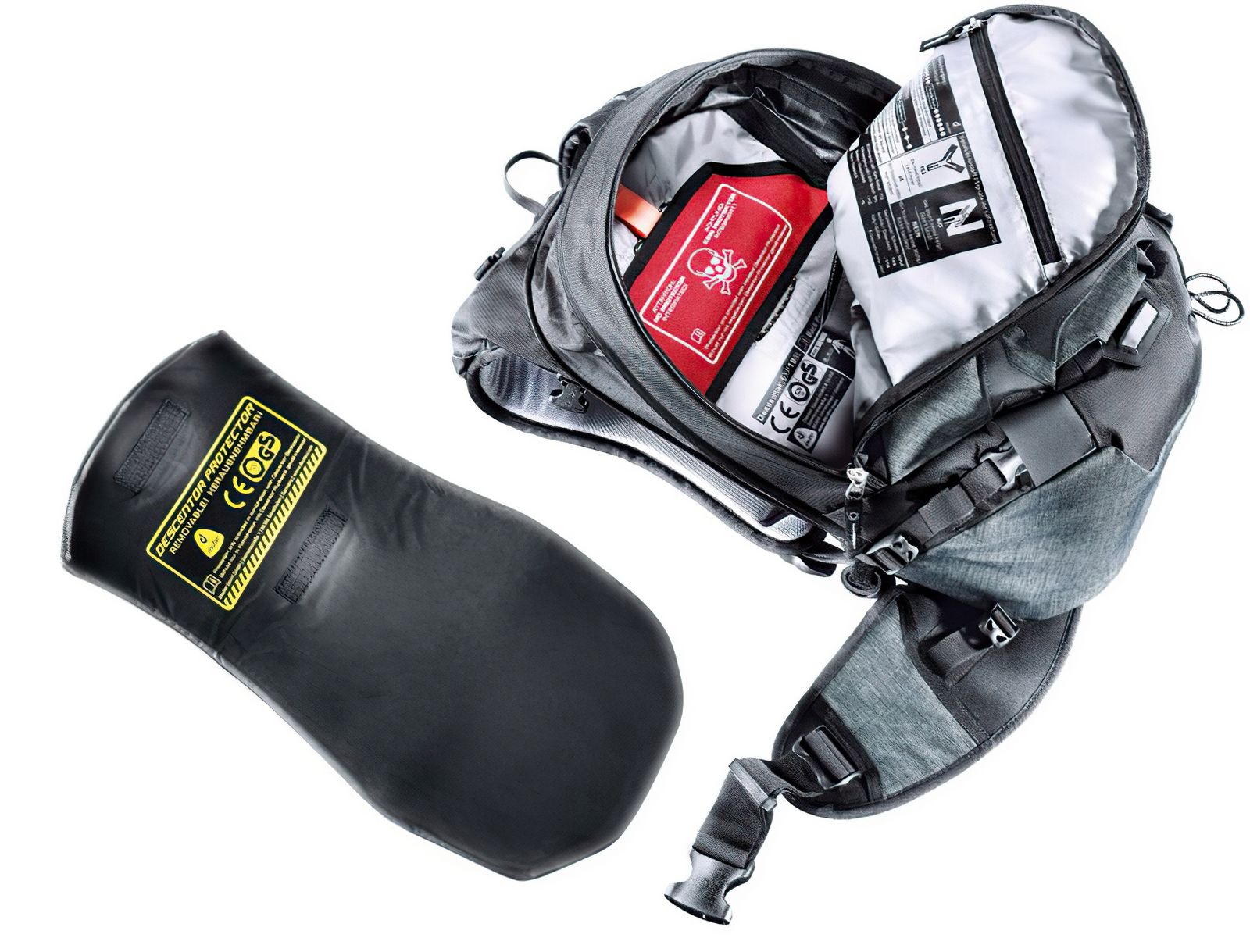 рюкзак пройшов інспекцію німецької експертної організації TUV SUD, має CE сертифікат для PSA спинного захисту, спеціальної плити зробленої з еластичної віскозної піни SC-1 від німецької компанії SaS-Tec, захист спини від верхньої частини стегна до начинки плеча 38-49 см.