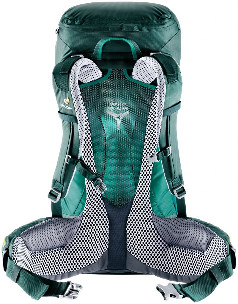 В компактних рюкзаках і моделях середнього обсягу, які найчастіше потрібні на досить простих маршрутах, ми використовуємо всі можливості для найкращої вентиляції. Серце системи вентиляції Aircomfort – з перевіреною і доведеною десятиліттями ефективністю – гнучкий пружний сталевий каркас. Він надзвичайно міцний, забезпечує рівномірний натяг сітчастого матеріалу спинки рюкзака і створює простір для вентиляції між рюкзаком і спиною для відводу і випаровування вологи. Deuter впровадив і запатентував цю технологію на світовому ринку в 1984 році.