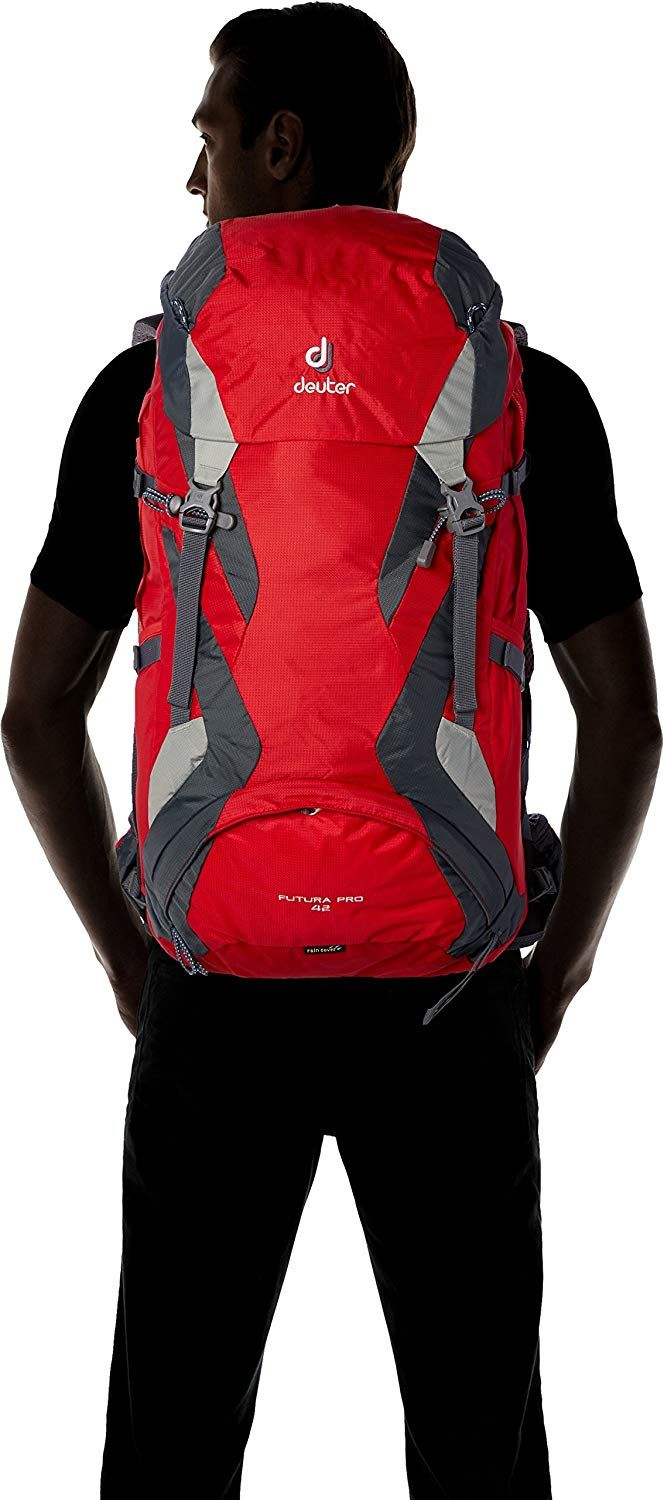 Спортивний рюкзак Дойтер Футура Про об'ємом 42 літри, це провідна модель серед легких рюкзаків Deuter, яка зберегла свої плавні обводи, першокласну функціональність у поєднанні з чудовою системою вентиляції Aircomfort і міцною металевою спинкою. Класична верхня завантаження з клапаном плюс нижній вхід з внутрішньою перегородкою. Рюкзак відмінно підійде для дво - триденних туристичних походів.