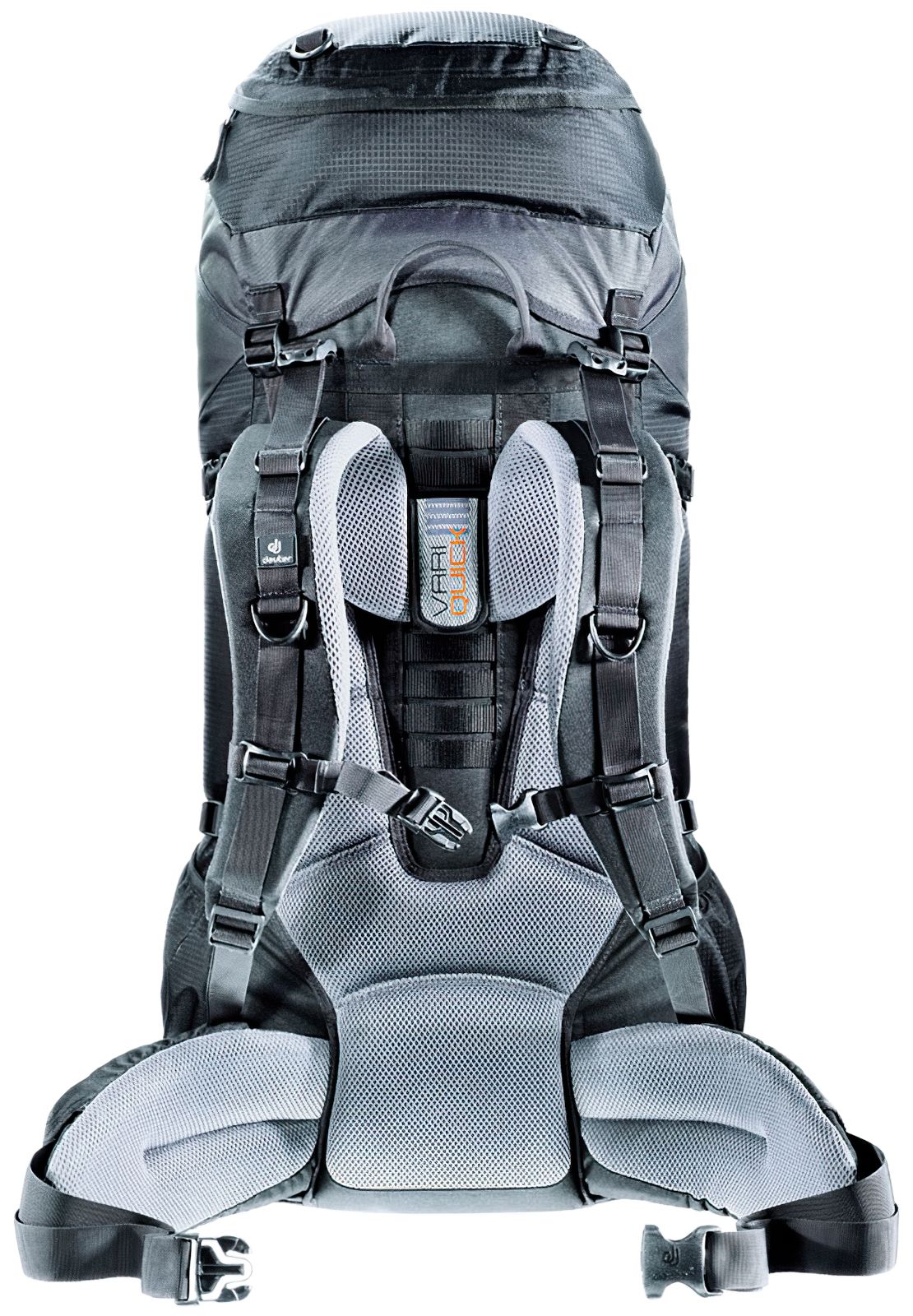 спинка Deuter Contact System - регульована підвісна система спинки Vari Quick, дозволяє вам виставити необхідну висоту відповідно до вашого статури, що в поєднанні з плечовими лямками, широким поясним ременем і самою спинкою, оснащеними м'якими подушечками, які щільно обіймають ваше тіло, все це рівномірно розподіляє вагу вантажу, знімаючи навантаження з плечей. Крім того, вантажі переносяться легше всього, коли вони знаходяться близько до спини. Канали між подушками, а також повітропроникна і міцна підкладка з 3D сітки, забезпечують приємну вентиляцію